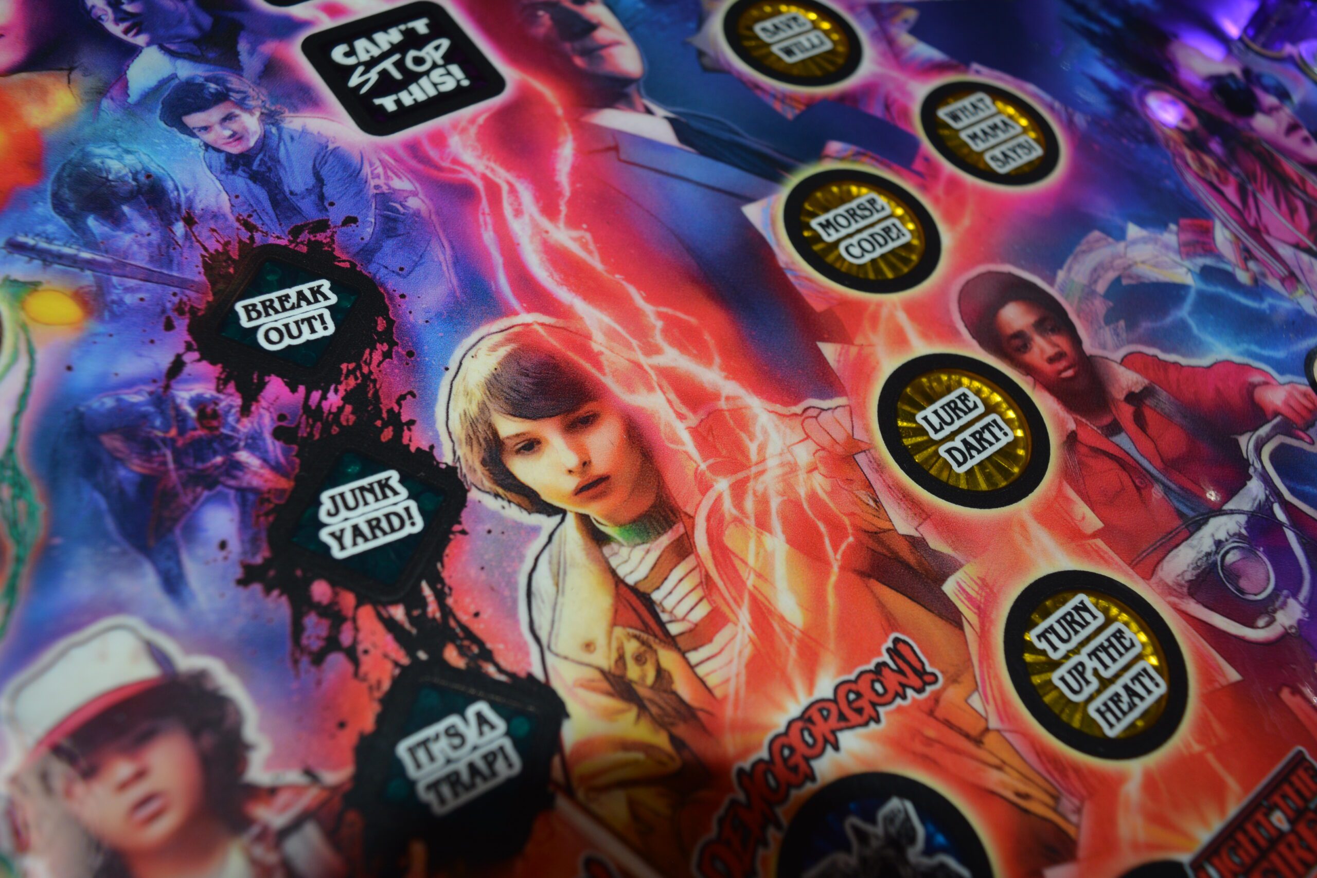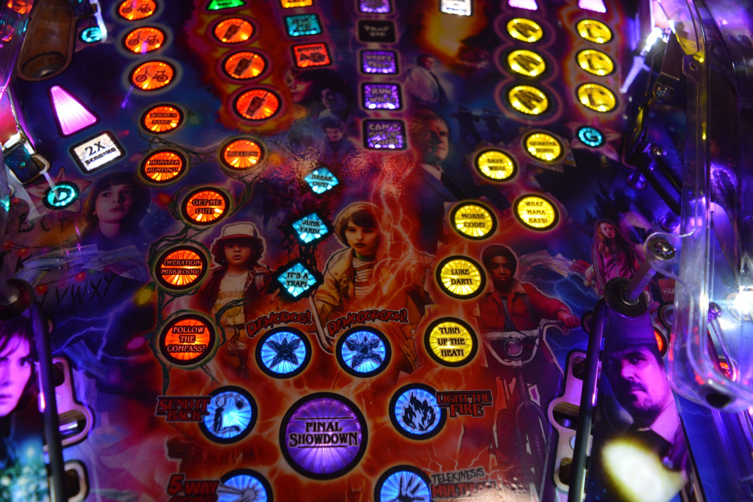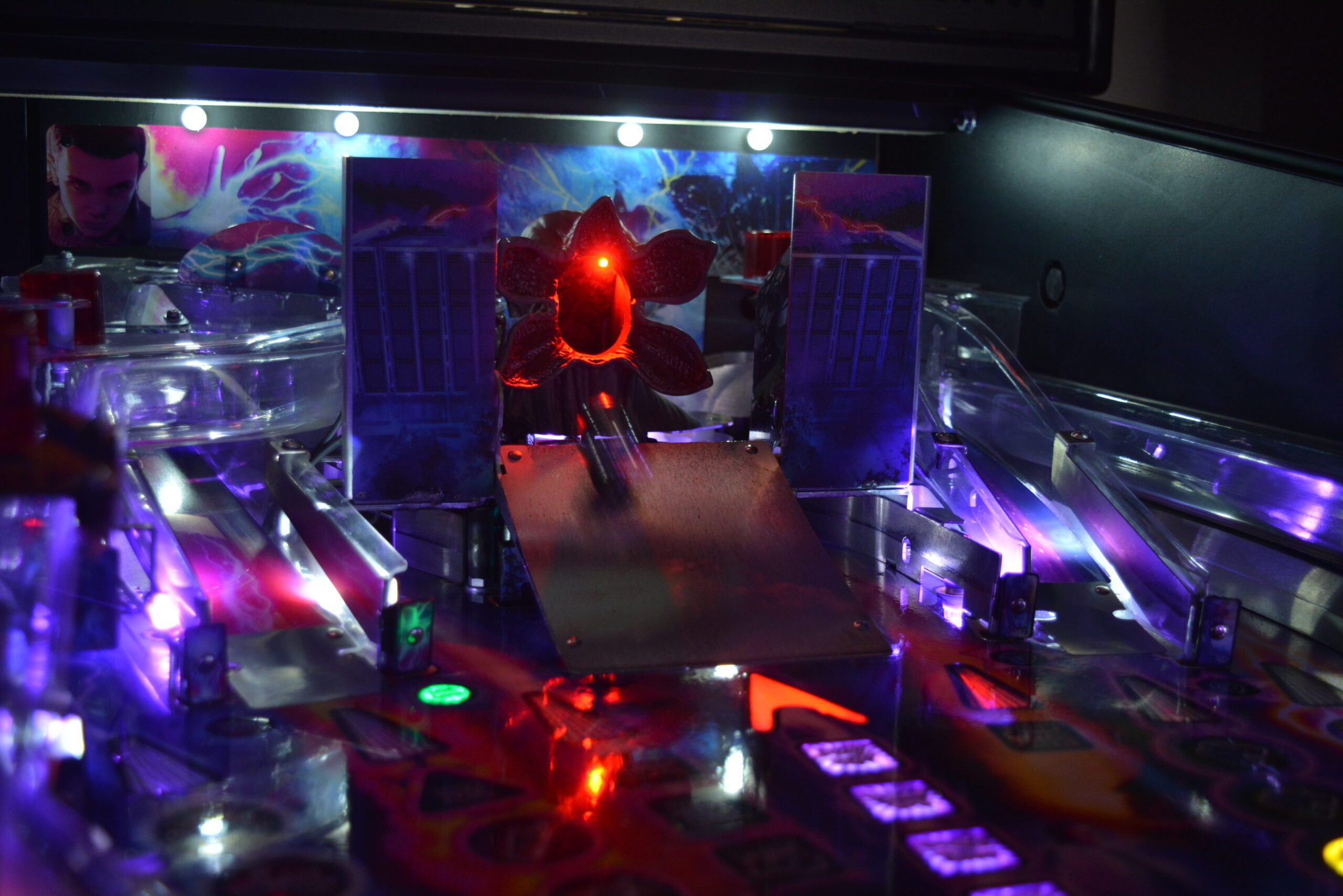 A Stranger Things rajongóinak a Stern Stranger Things Pro flippergép egy igazi kincs, amely hűen visszaadja a sorozat ikonikus világát. A játék minden részletében megidézi a 80-as évek misztikus Hawkins városát, különösen a Demogorgon elleni harcot. A gép speciális vetítési technológiája és dinamikus fényeffektjei révén a játékosok újraélhetik a sorozat legizgalmasabb pillanatait. A zene és a hanghatások szintén az eredeti sorozatból származnak, ami tovább növeli a nosztalgikus és izgalmas élményt. Ezt a flippergépet nem csak a géprajongók, hanem a Stranger Things világa iránt lelkesedők is nagyra értékelik!