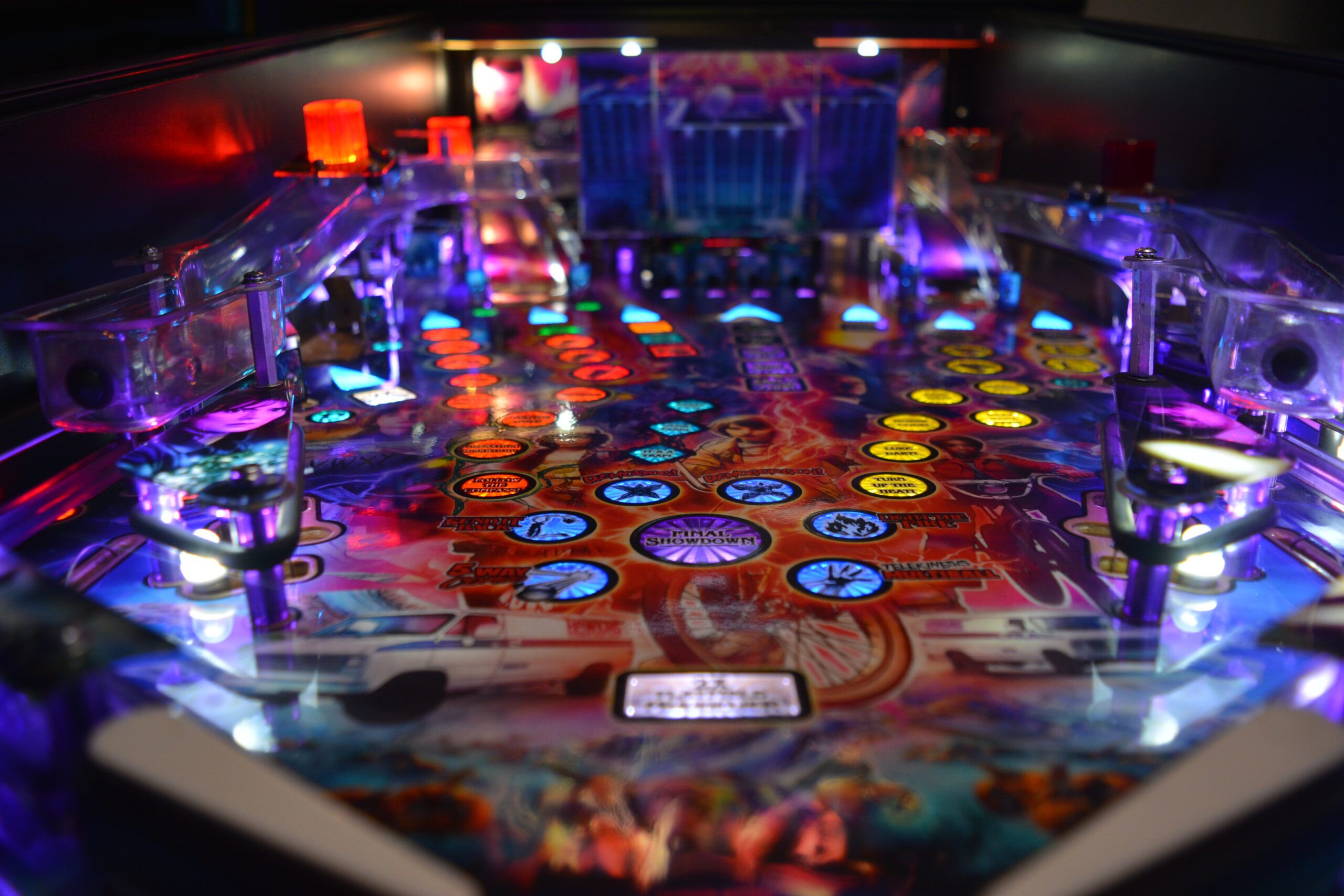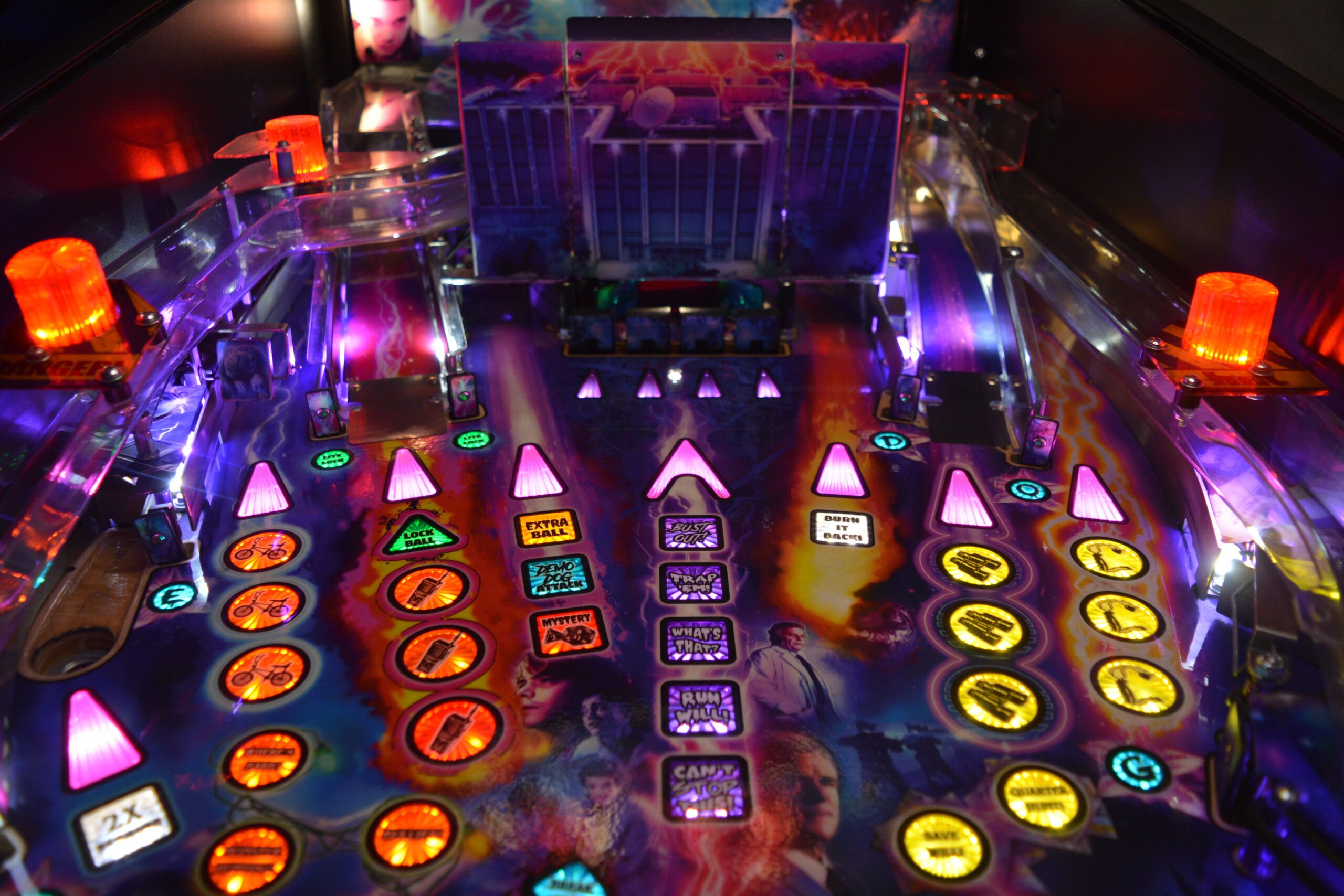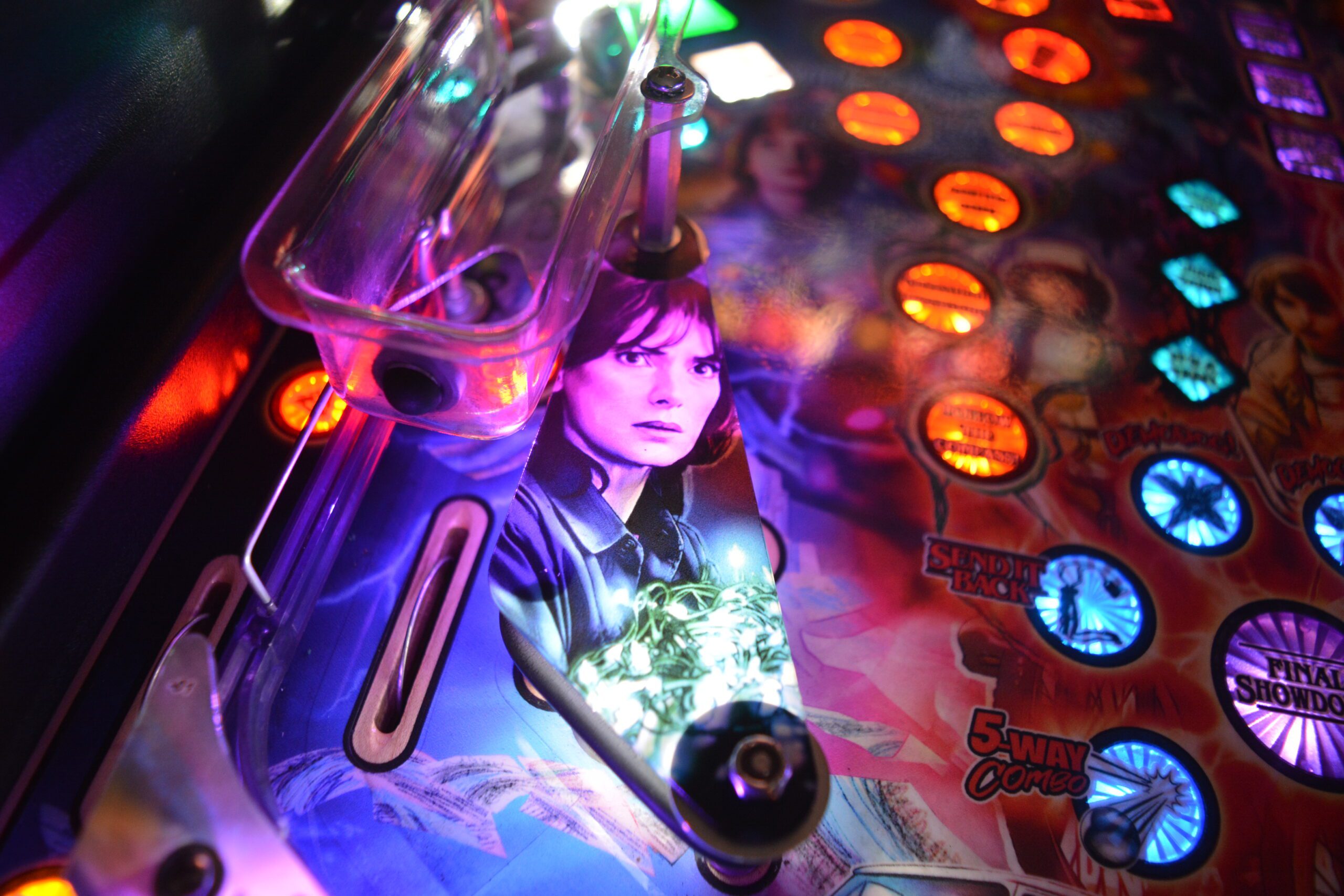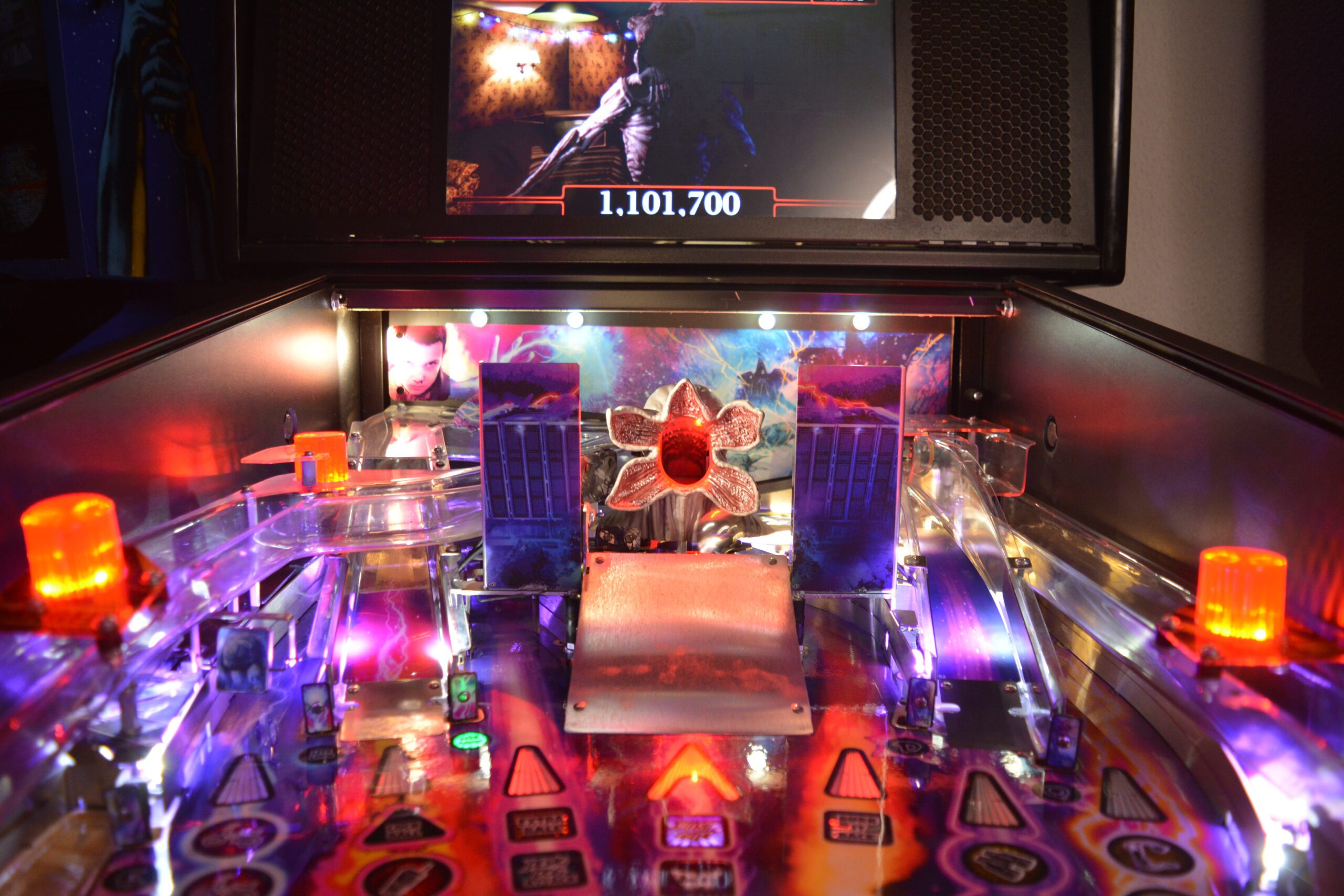 A Stranger Things rajongóinak a Stern Stranger Things Pro flippergép egy igazi kincs, amely hűen visszaadja a sorozat ikonikus világát. A játék minden részletében megidézi a 80-as évek misztikus Hawkins városát, különösen a Demogorgon elleni harcot. A gép speciális vetítési technológiája és dinamikus fényeffektjei révén a játékosok újraélhetik a sorozat legizgalmasabb pillanatait. A zene és a hanghatások szintén az eredeti sorozatból származnak, ami tovább növeli a nosztalgikus és izgalmas élményt. Ezt a flippergépet nem csak a géprajongók, hanem a Stranger Things világa iránt lelkesedők is nagyra értékelik!